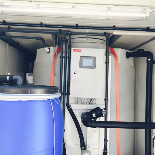Alle prosessdeler til anlegget er plassert i én 20-fots container og er en Plug&Play løsning der det kun er nødvendig å koble til innløp/utløp og strømtilførsel (20A på et 3-fas rundstikk).