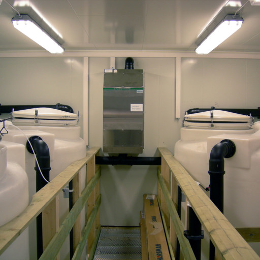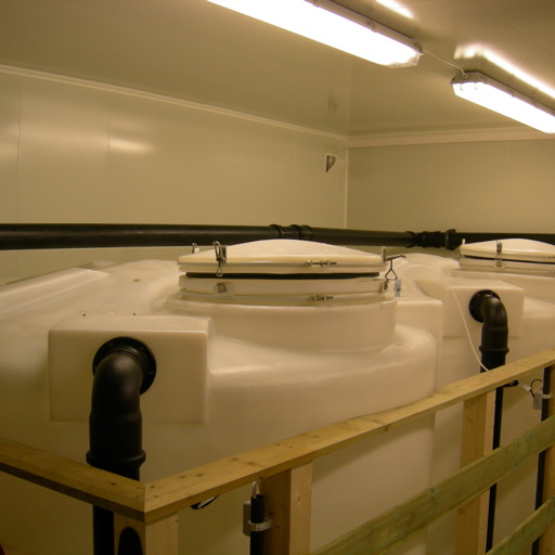 Det ble deretter gravd ned en glassfibertank på utsiden av bygget som inneholder mottakstank og slamlager. Innvendig kledning ble byttet til vannfaste fjøsplater og det ble etablert et maskinrom for blåsemaskiner og kompressor.
